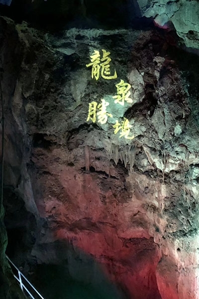 旅游即將接近尾聲,下午坐上大巴來到了最后一個景點——宣州區水東鎮的龍泉溶洞,洞壁有南宋開慶元年(1259年)徐士鴻題詩曰:“層層怪石幾千年,曲折幽通趣自然。應有神龍騰云變,一逢春到滿人間”。洞內盤旋曲折,壯麗非凡,鐘乳、石筍、石柱比比皆是。怪石高臺,形象多變,栩栩如生。一路而上,在半山腰出了洞口,膽大的同事還體驗了一把“抖音同款”的高空秋千。