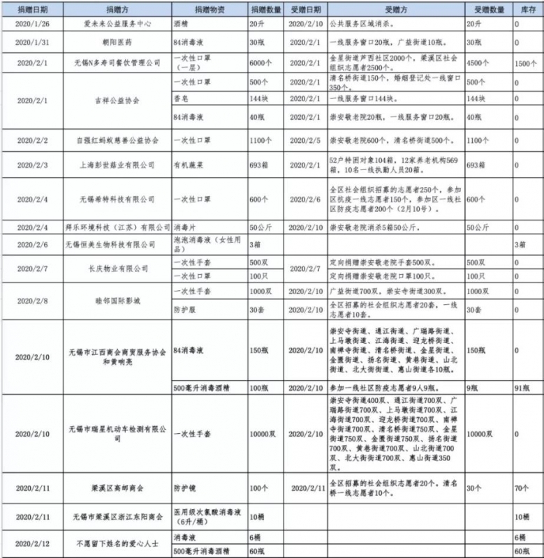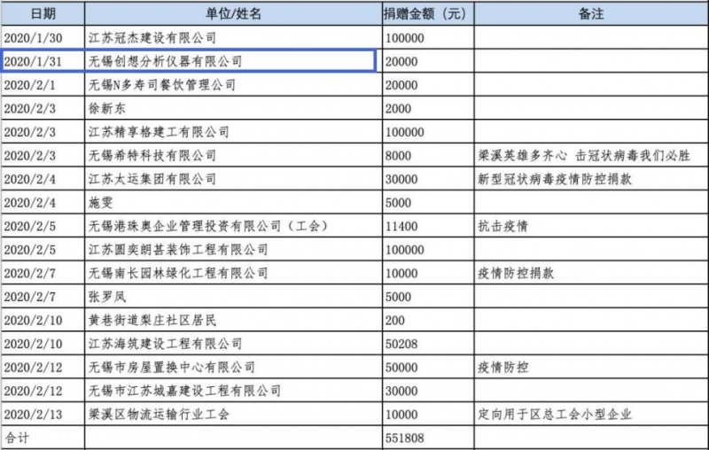 無錫市梁溪慈善總會梁溪分會、愛心慈善基金會本著公開、透明的原則,將捐贈及使用情況想社會公示: